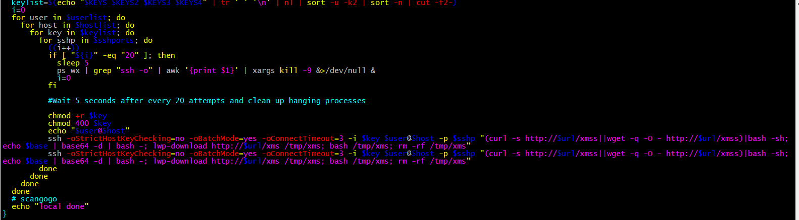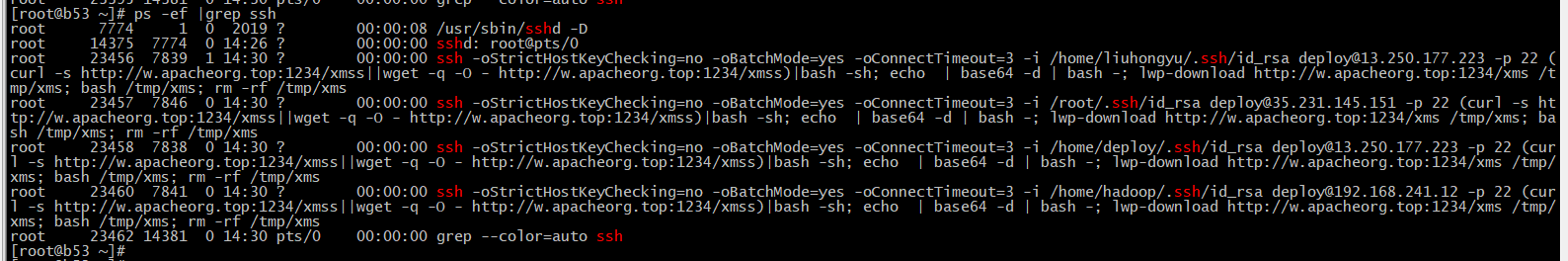 !!! 脚本还有尝试通过本服务器连接其他服务器,在其他服务器上执行脚本操作:(简单在其他服务器上看了下 目前没发现异常.)