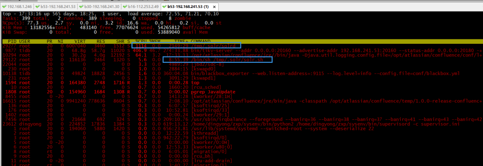 公司老人留下的内部自用confluence博客系统服务器被挖矿程序入侵。